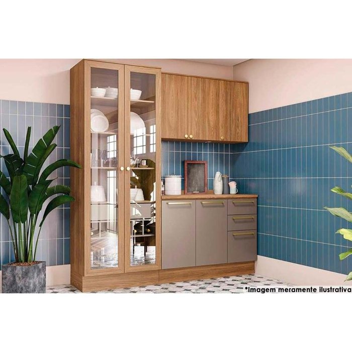 Cozinha Completa Botanic 4 Peças (1 Armário + 1 Balcão + 1 Cristaleira + 1Complemento) M656 Nogueira/Fendi - Kappesberg
