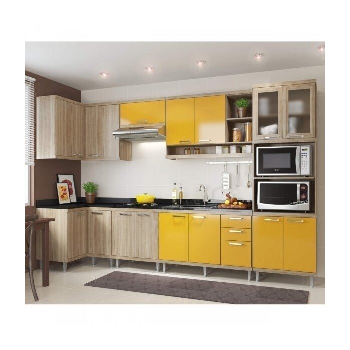 Cozinha Completa Canto com Balcão sem Tampo 7 Peças 15 Portas Sicília Multimóveis Argila/Amarelo