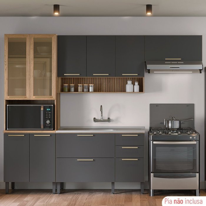 Cozinha Completa com Armário e Balcão para Pia Mel/Grafite