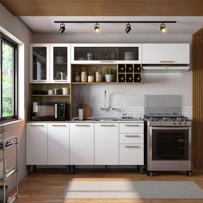 Cozinha Completa com Pia 2 Gav Branco/carvalho Axé Bertolini