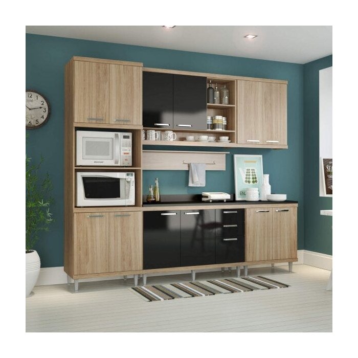 Cozinha Completa com Tampo 12 Portas 7 Peças Sicília Multimóveis Argila/Preto/Preto