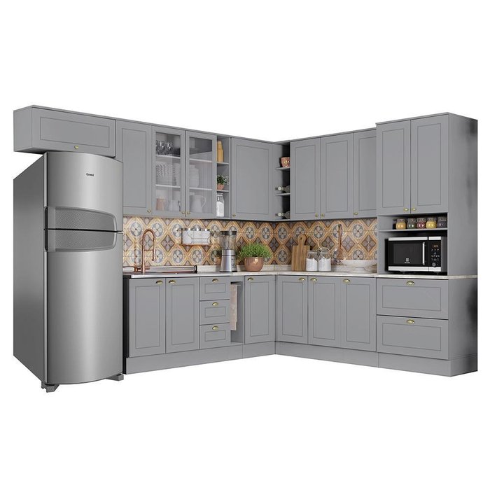 Cozinha Completa de Canto Americana 12 Peças com Torre Quente Cinza - Móveis Henn