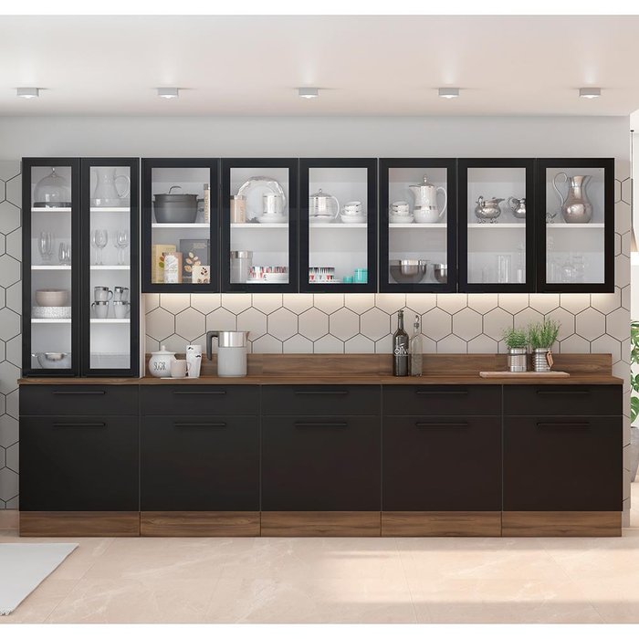 Cozinha Completa Exclusive com 13 Portas, 4 Gavetas e 10 Prateleiras Itatiaia Preto, Castanho com Branco