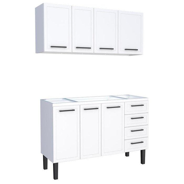Cozinha Completa Gabinete Para Pia 140 e Armário Aéreo Juno/Apolo 4 Gavetas Cozimax Branco