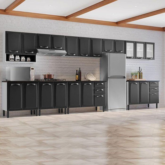 Cozinha Completa Grafite em Aço Peças Vidros Itatiaia