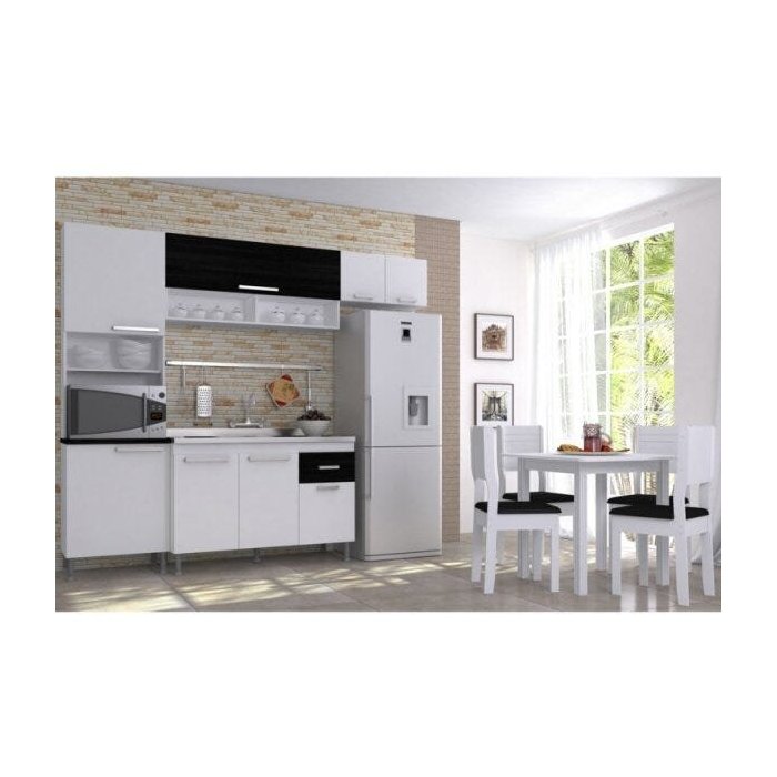 Cozinha Completa Italia com Mesa e 4 Cadeiras (Não Acompanha Pia)Indekes tons madeirados de Branco/Preto