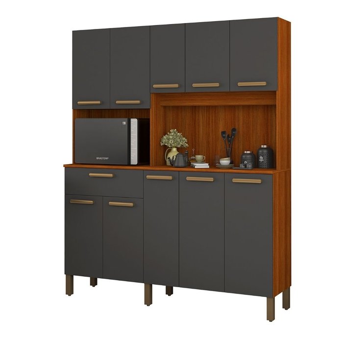 Cozinha Completa Jade 10 Portas Gaveta Mdf Alta Qualidade:cinza Cinza