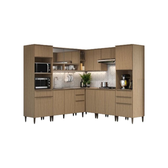 Cozinha Completa Juliette 8 Peças Canto Armário Balcão de Pia e Tampo Madeira Mdp Carvalho Dakar