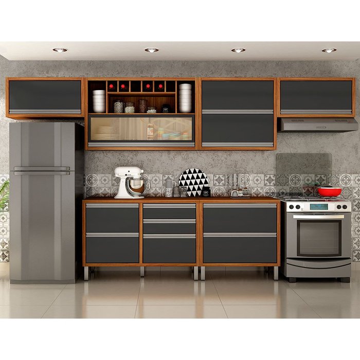 Cozinha Completa Moderna Jade 6 Peças Carvalho/Grafite