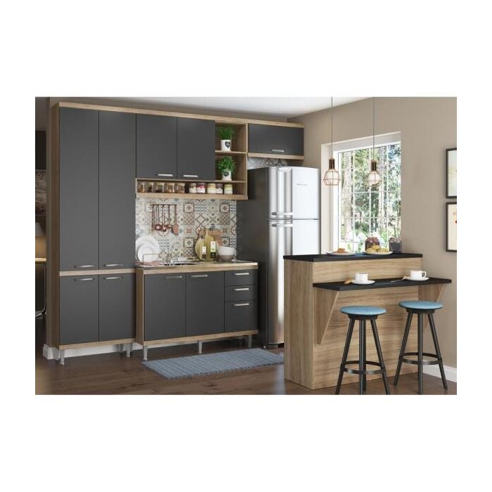 Ahhh, a cozinha! Difícil não ter boas memórias desse espaço da casa em alguma fase da vida. O cheirinho do bolo da avó, o domingo de mesa farta e rodeada de familiares são lembranças gostosas que se leva para toda a vida. Inspirada no aconchego desse pedacinho da casa e nos gostos e sabores da Itália é que a Multimóveis Decor criou a Linha de cozinhas Sicília, para proporcionar praticidade e funcionalidade na criação do ambiente. São diversas modulações e composições de cores que permitem construir espaços personalizados, onde a combinação de suas escolhas darão o toque pessoal a cada projeto.A Cozinha Sicília é composta por: - 01 Paneleiro duplo 70 cm- 01 Aéreo de 120 cm- 01 Basculante 70 cm- 01 Balcão para pia 120 cm - 01 Bancada/mesa/divisória de ambiente/balcão de mesa.- Manual de montagem - Certificado de Garantia: 03 meses contra defeito de fabricação Porque comprar a Cozinha Sícilia? Porque é uma das cozinhas com maior altura e espaço interno do mercado. Além disso, possui várias opções de cores, acabamento em pintura UV acetinada texturizada. Material: MDPO que é o MDP? O MDP é produzido em três camadas: uma grossa no miolo e duas finas nas superfícies. Essa composição garante ao produto grande resistência estrutural, conferindo maior resistência ao empenamento e à colocação e remoção de parafusos, além de torná-lo um material mais leve. Possui alta absorção de tinta no acabamento final. Detalhes Técnicos: Descrição: Kit Cozinha 5 MódulosCor da Caixa: Argila Acetinado TexturizadoCor das Portas: GrafitePortas: 11Tipo de portas: Porta de Abrir e Porta BasculantePorta com vidro: NãoGavetas: 3Prateleiras: 12Corrediça: MetálicaPuxador: PVCPistão a Gás: SimInclui Tampo no Balcão de 120 cm: NãoTampos dos balcões: BP de 25 mmPés: Com regulagem de altura em polipropilenoEspaço para microondas: Não DIMENSÕES: Altura (cm): 231,5Largura (cm): 260Profundidade (cm): 219 Instruções de Cuidado: Limpar com pano seco para retirar o pó. Favor não utilizar produtos químicos ou abrasivos na limpeza. Não recomendado aplicar lustra móveis. Observações: - O produto será entregue desmontado e a Multimóveis não disponibiliza serviço de montagem. Mas para facilitar a instalação, são enviados: Parafusos, pregos, cavilhas, entre outros. Em caso de dúvidas, favor consultar o manual de montagem. - Acompanha certificado de Garantia e Nota fiscal. Imagem ilustrativa: A decoração não acompanha o produto.