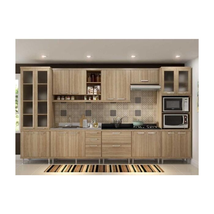 Composta por armários, gavetas, prateleiras, balcão para pia, oferece tudo o que é necessário para ter uma cozinha completa.