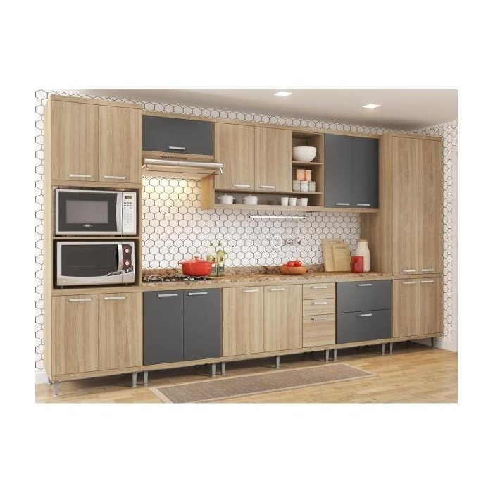 Já pensou em uma cozinha completinha chegando na sua casa? Então não perca essa oportunidade da Multimóveis!A linha de cozinha Sicília da Multimóveis Decor foi desenvolvida para proporcionar praticidade e funcionalidade na criação do ambiente. São diversas modulações e composições de cores que permitem construir espaços personalizados, onde a combinação de suas escolhas darão o toque pessoal a cada projeto.Elas buscam inspiração nas cores, sabores e aromas dos vales italianos.A Cozinha Sicília é composta por: - 01 Módulo para forno e micro-ondas 70 cm- 01 Aéreo Basculante, 01 Aéreo de 120 cm- 01 Aéreo duplo 70 cm- 01 Paneleiro duplo com profundidade de 51,5 cm- 01 Balcão duplo com tampo 70 cm- 01 Balcão com tampo 120 cm - 01 Gaveteiro duplo com tampo 70 cm- Manual de montagem - Certificado de Garantia: 03 meses contra defeito de fabricaçãoPorque comprar a Cozinha Sícilia? Porque é uma das cozinhas com maior altura e espaço interno do mercado. Além disso, possui várias opções de cores, acabamento em pintura UV acetinada texturizada. Material: MDPO que é o MDP? O MDP é produzido em três camadas: uma grossa no miolo e duas finas nas superfícies. Essa composição garante ao produto grande resistência estrutural, conferindo maior resistência ao empenamento e à colocação e remoção de parafusos, além de torná-lo um material mais leve. Possui alta absorção de tinta no acabamento final. Detalhes Técnicos: Descrição: Kit Cozinha 9 módulosCor da Caixa: Argila Acetinado TexturizadoCor das Portas: GrafitePortas: 17Tipo de portas: Porta de Abrir e Porta BasculantePorta com vidro: NãoGavetas: 5Prateleiras: 17Corrediça: MetálicaPuxador: PVCPistão a Gás: SimInclui Tampo no Balcão de 120 cm: SimTampos dos balcões: BP de 25 mmPés: Com regulagem de altura em polipropilenoEspaço para microondas: SimMicroondas: 38,9 x 67 x 49,5 cm / Forno: 38,6 x 67 x 49,5 cm DIMENSÕES: Altura (cm): 231,5Largura (cm): 400Profundidade (cm): 51,5 Instruções de Cuidado: Limpar com pano seco para retirar o pó. Favor não utilizar produtos químicos ou abrasivos na limpeza. Não recomendado aplicar lustra móveis. Observações: - O produto será entregue desmontado e a Multimóveis não disponibiliza serviço de montagem. Mas para facilitar a instalação, são enviados: Parafusos, pregos, cavilhas, entre outros. Em caso de dúvidas, favor consultar o manual de montagem. - Acompanha certificado de Garantia e Nota fiscal. Imagem ilustrativa: A decoração não acompanha o produto.