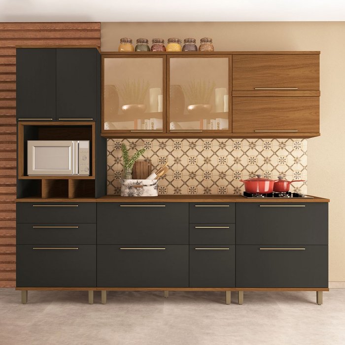 Cozinha Completa Munique 10 Portas 6 Gavetas com Vidro Freijo/chumbo - Indekes