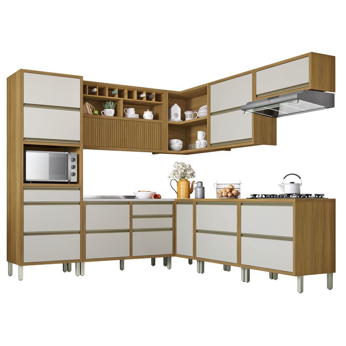 Cozinha Completa Paneleiro 9 Peças de Canto Baronesa Freijó com Off White - Nesher