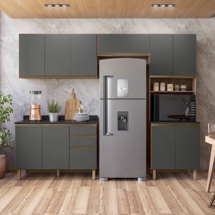 Cozinha 100% MDF com um designer moderno, possui uma excelente qualidade, seus puxadores de alumínio trazem ainda mais sofisticação para o ambiente. Pertence a linha premium da Nicioli, e conta com corrediças telescópicas, dobradiças com amortecimento para não ocorrer batida brusca nas portas e pistão a gás no basculante.
