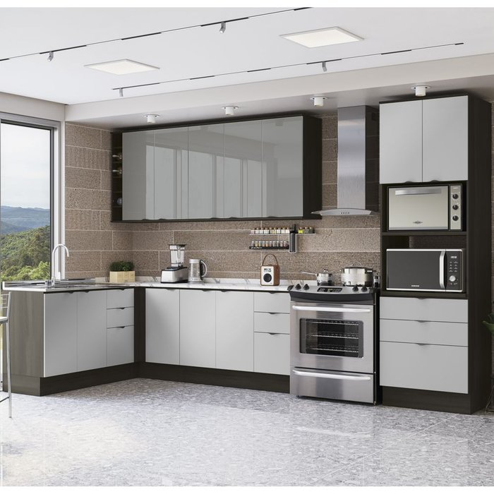 Cozinha Completa Planejada de Canto 1,79x2,88mt 09pc Linha Nox CJ43014-156 Kappesberg Móveis Kappesb