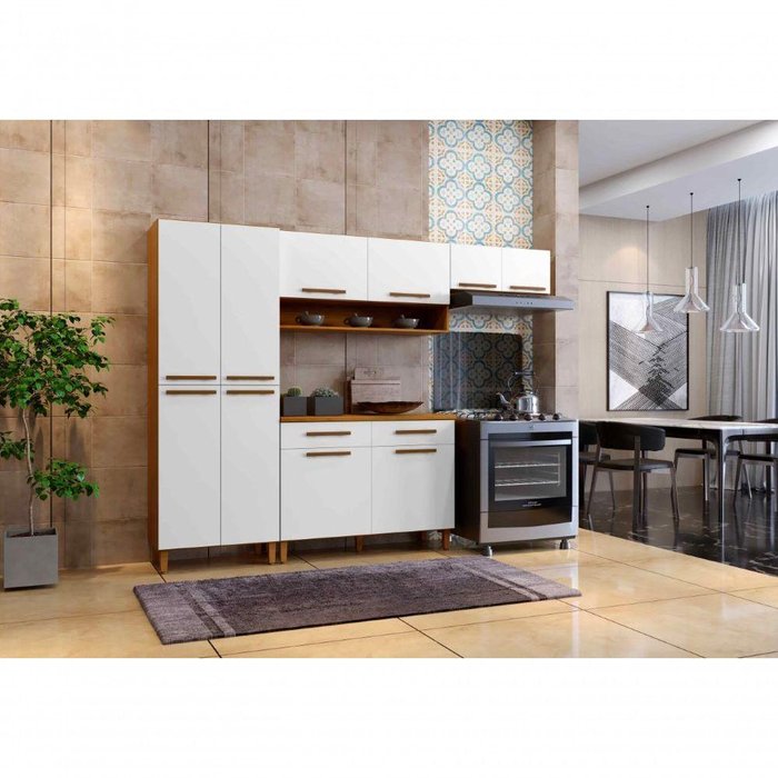 Cozinha Completa Preciosa 10 Portas Arte Móveis Cor:freijó/branco