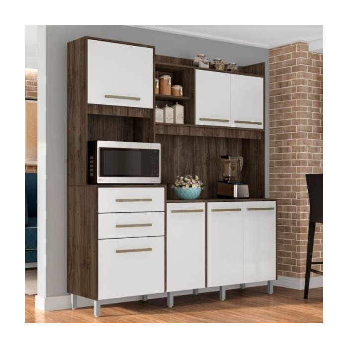 Cozinha Completa Prime 1800 6 Portas 3 Gaveta Madine Móveis Rustico/Branco Cestaplus