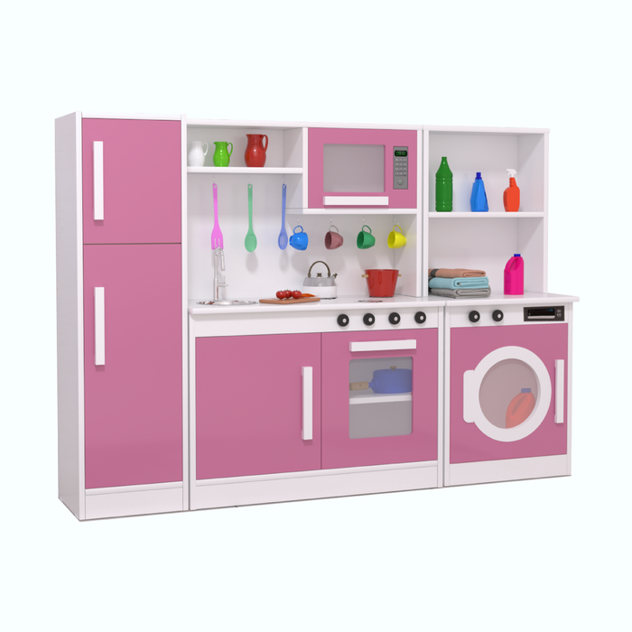 O Conjunto de Cozinha Perfeita Mágica com lavanderia, estimula a criatividade e a imaginação das crianças, permitindo que elas inventem histórias, receitas, brincar de faz de conta, e casinha.