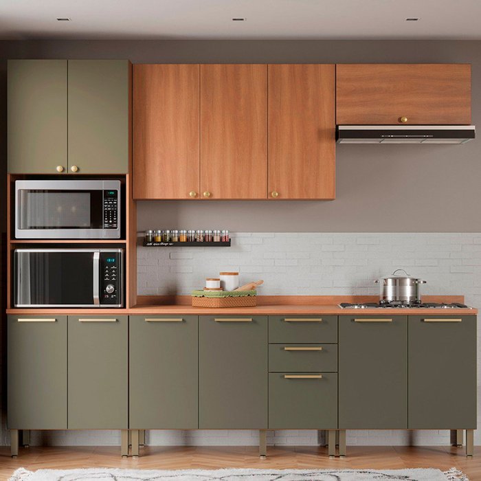 Cozinha Completa Sálvia 12 Portas 3 Gavetas Freijó/Verde - Telasul
