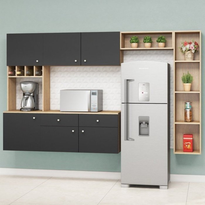 Cozinha Completa Suspensa 5 Peças 6 Portas 2 Gavetas 5 Nichos e Adega Itapuã Espresso Móveis