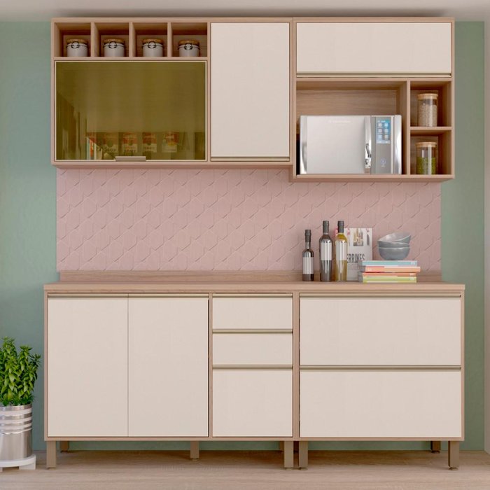 | Itens Inclusos | 1 Armário Aéreo 1,20m, 1 Armário com Suporte Microondas, 1 Balcão Duplo com Duas Gavetas, 1 Balcão Triplo; Manual de montagem, Ferragens e Acessórios |