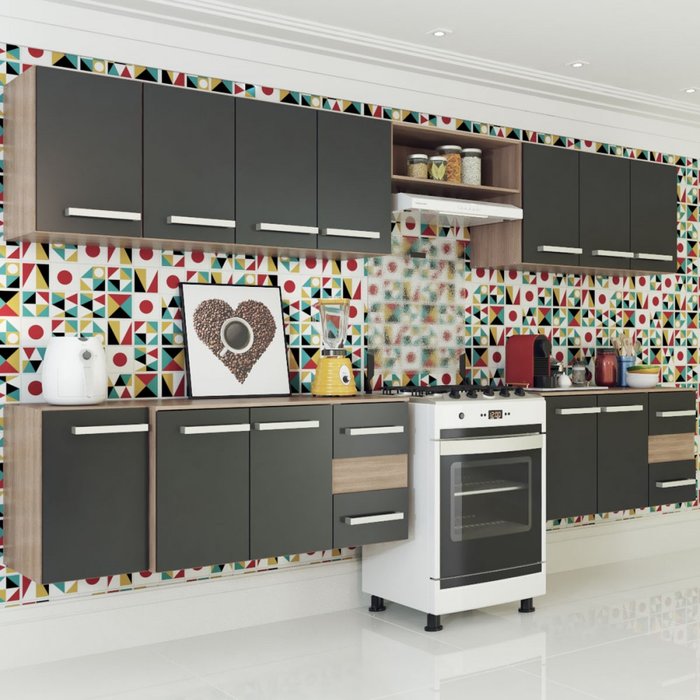 Cozinha Completa Yasmin 12 Portas 4 Gavetas Castanho/preto - Panorama Móveis