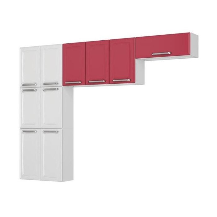 Cozinha De Aço 3 Peças Luce Branco e Vermelho Itatiaia Móveis