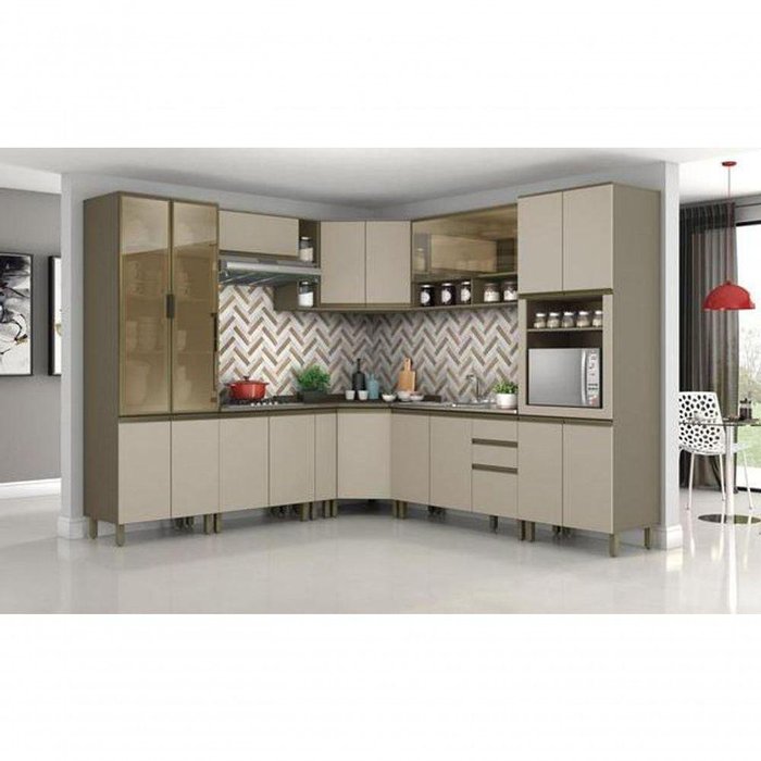 Cozinha de Canto Connect 13 Peças Composição 02 Duna Cristal - Henn Com a Cozinha Connect você vai montar um ambiente prático, bonito e funcional. Ela é uma cozinha modulada, 100% MDF, que oferece mais de 35 módulos para você criar as mais diversas composições: como uma cozinha pequena, em espaços mais compactos ou uma cozinha grande em ambientes maiores. Esse armário de cozinha tem ainda gavetas com corrediças telescópicas, puxadores de perfil em alumínio, cristaleira com portas de vidro reflecta e muitos outros diferenciais. Com ela, você vai ter uma cozinha modulada completa, exatamente do seu jeito. A cozinha é composta por 13 peças: