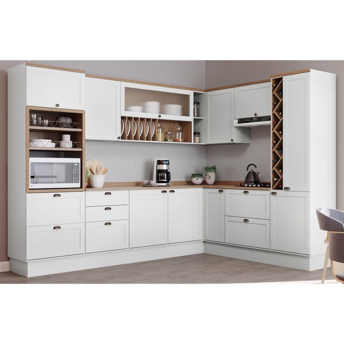 Cozinha em L Modulável Estilo Provençal Cava 100% MDF:Branco