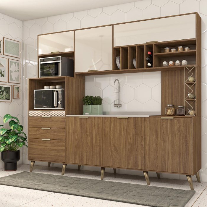A Cozinha GÊNOVA possui prateleiras externa e interna e gavetas com um amplo espaço interno é uma ótima opção para deixar sua cozinha mais funcional e bonita. Produzida em MDP garante maior durabilidade e resistência.