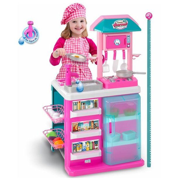 Cozinha Gourmet de Brinquedo Infantil Rosa com Pia Sai Agua Magic TOYS Rosa
