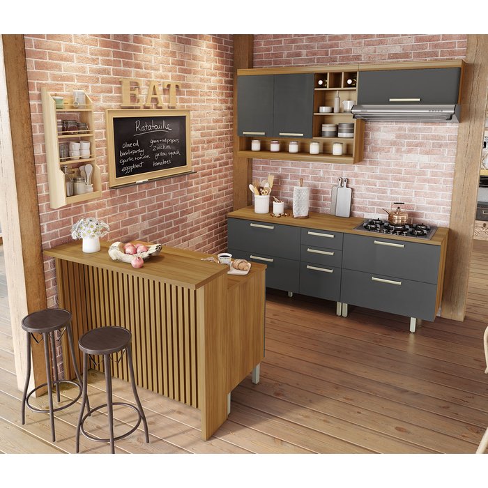 Cozinha Ilha Completa Burguesa Grafite com Freijó - Nesher