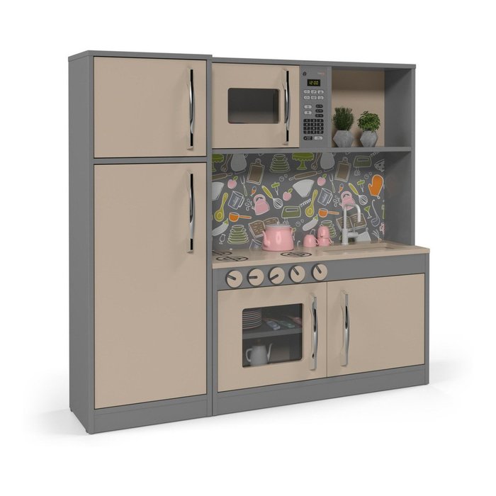 Cozinha Infantil Diana Completa Com Refrigerador Meninas Mdf CASA JD MÓVEIS CINZA