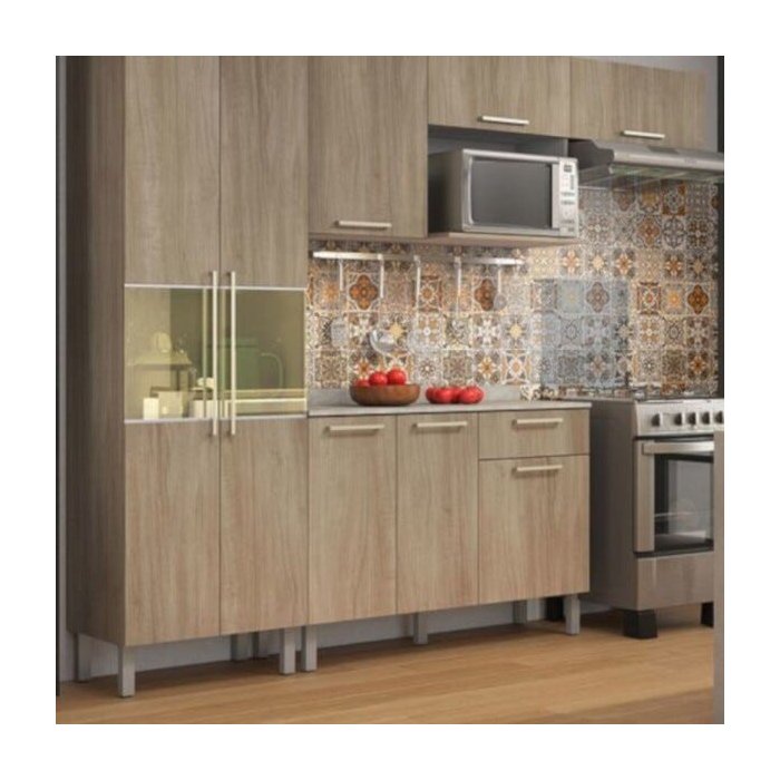 Deixe o design da sua cozinha mais belo e rústico com a Cozinha Itatiaia Kit Star Aveiro Madeira 3 Peças Vidro Com Tampo, prateleiras bem divididas para caber utensílios, mantimentos e panelas de todos os tamanhos. Possui nicho para micro-ondas, além de um espaçoso paneleiro.