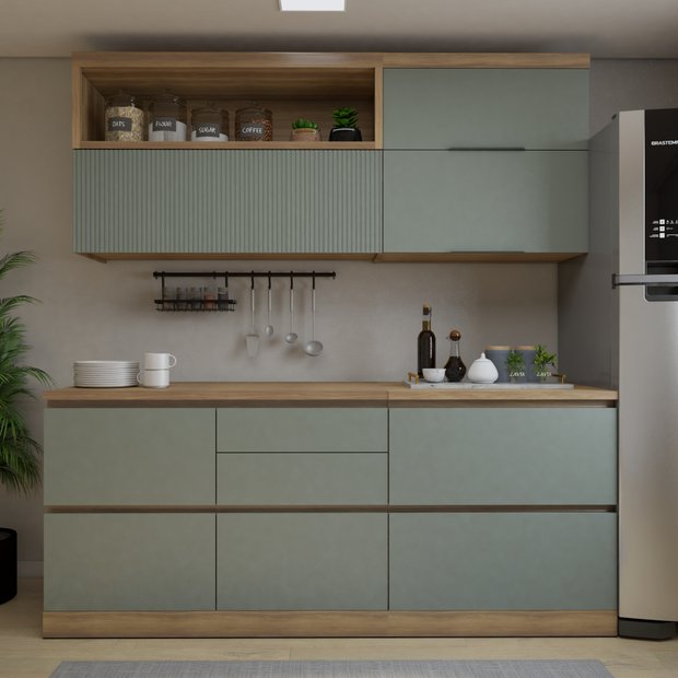 Cozinha Millena 4 Peças 100% Mdf Yescasa Verde/Nature