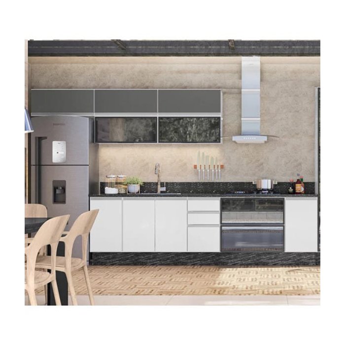 Cozinha Modulada 07 Peças 100% MDF Kali Premium Branco Chumbo Cetim Nicioli