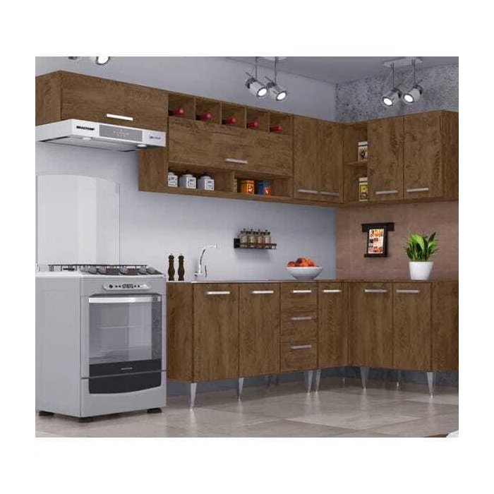Cozinha Modulada 07 Peças Milena 2726 Marrom Milani Movelaria Marrom