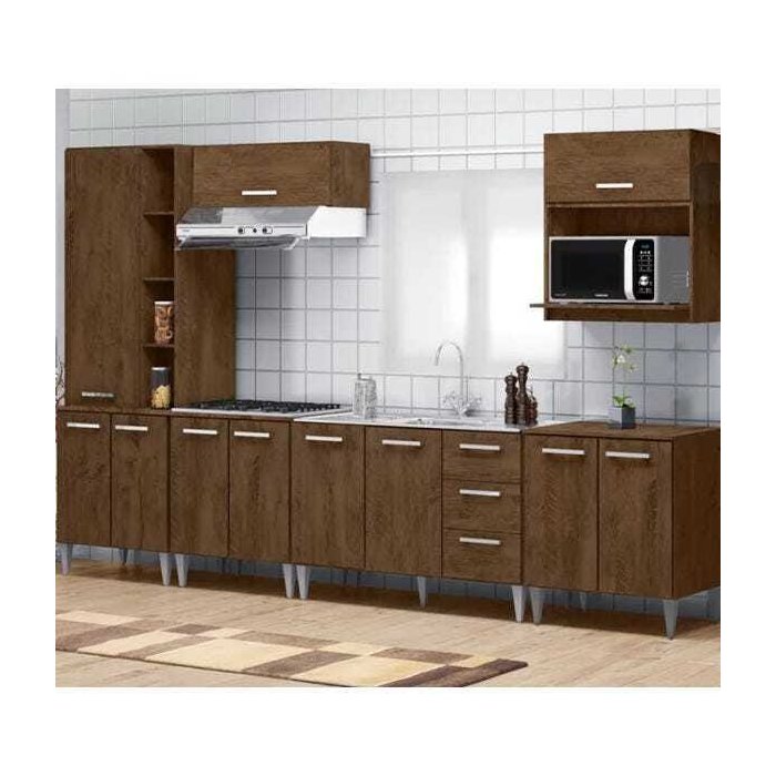 Cozinha Modulada 07 Peças Milena 2736 Marrom Milani Movelaria Marrom