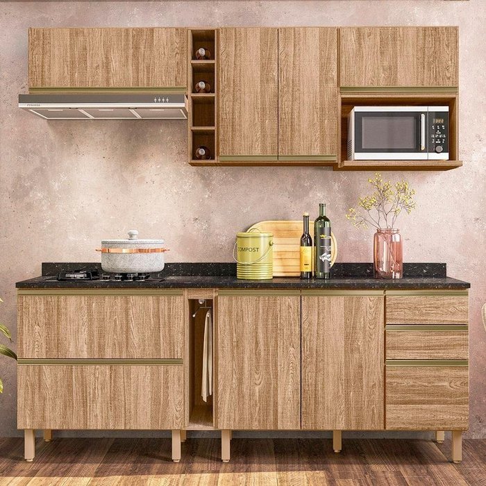 Cozinha Modulada Para Cooktop 08 Peças Em Mdf Kali Carvalho Rustico Nicioli Carvalho Rustico