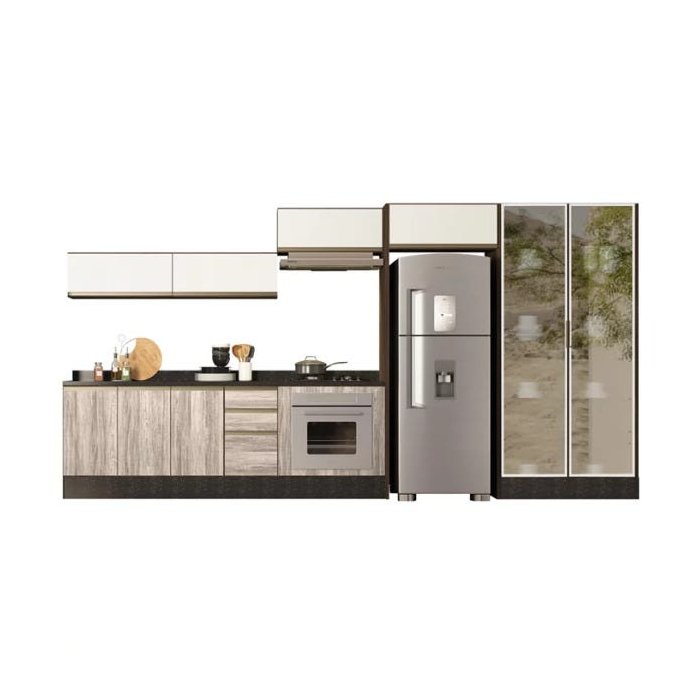 Cozinha Modulada 10 Peças 100% MDF Kali Premium Amendoa Arezzo Off White Nicioli Amendoa/Arezzo Rustico / Off White