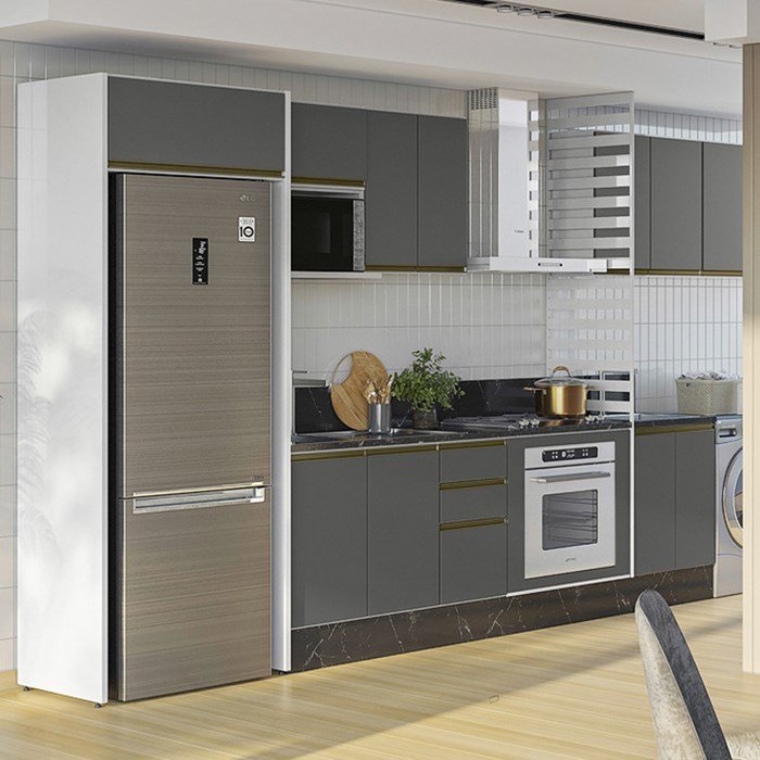 Cozinha Modulada 10 Peças em Mdf Kali Premium Cj11 Branco Chumbo Nicioli