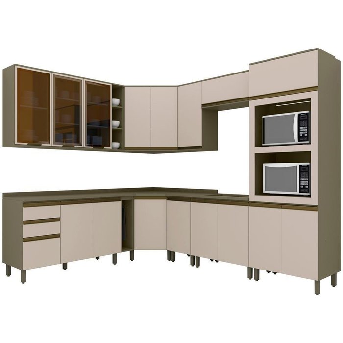 Cozinha Modulada 16 Peças Evy, Ótima escolha para a cozinha dos sonhos, sua estrutura de alta durabilidade em 100% MDF de 3 e 15 mm, acabamento com pintura UV na cor Duna Cristal (Fosco). Composto por portas com dobradiças metálicas de 35 mm com amortecimento permitindo fechamento leve e suave, pistão a gás, vidro reflecta, porta toalha e nicho aéreo. Gavetas com corrediças telescópicas, cada gaveta suporta 3 kg distribuídos, divisórias internas que suporta até 8 kg distribuídos. Balcão com dupla opção de montagem, espaços para embutir forno e micro-ondas, puxador na cor Bronze. Acompanha tampo para cooktop em MDF na cor Duna (Fosco), usinado para cooktop de 04 bocas, com pré-marcação para cooktop de 05 bocas. Acompanham pés de 14,5 cm com regulagem de 2,5 cm chegando a 17 cm, exceto o módulo CI65, não acompanha pés, com opção de montagem suspensa ou fixada em outro módulo. Esta Cozinha Modulada possui diversos módulos avulsos que são vendidos separadamente, para você montar a sua cozinha como sempre sonhou, foi elaborado para quem tem estilo e personalidade. Estes móveis chegarão em sua casa separados em 18 volumes.