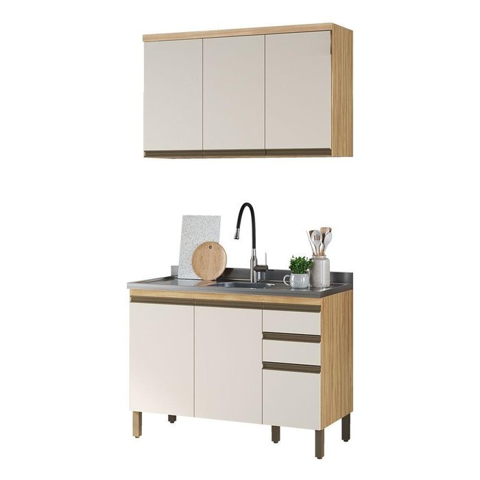 Cozinha Modulada 2 Peças 6 Portas e 2 Gavetas sem Tampo Chardonnay Móveis Riodoce Amêndoa/off