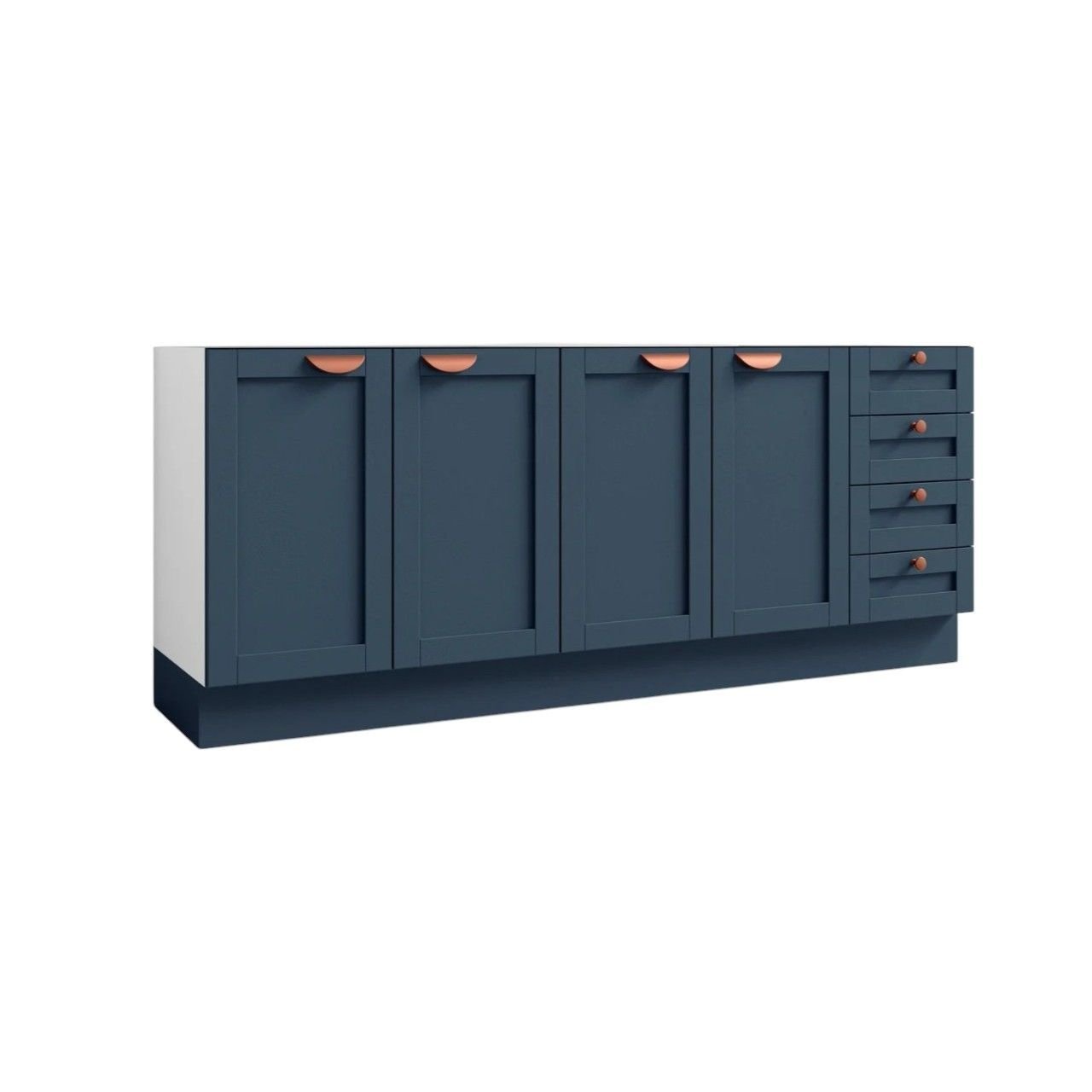 Cozinha Modulada formada por 2 Balcões, as portas e frentes de gaveta são feitas em MDF e possuem acabamento em Finish Foil com dobradiças com amortecimento, possibilitando fechamento soft closing. Possuem fita de borda em PVC, conferindo alta durabilidade e proteção contra umidade ao móvel.