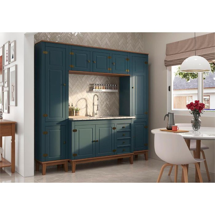 A Cozinha Modulada 4 Peças Azul Petróleo da La Decora é completamente cheio de charme e elegância. Com estilo rústico que agrega luxo e conforto à decoração, é ideal para compor ambientes de cozinha e copa.