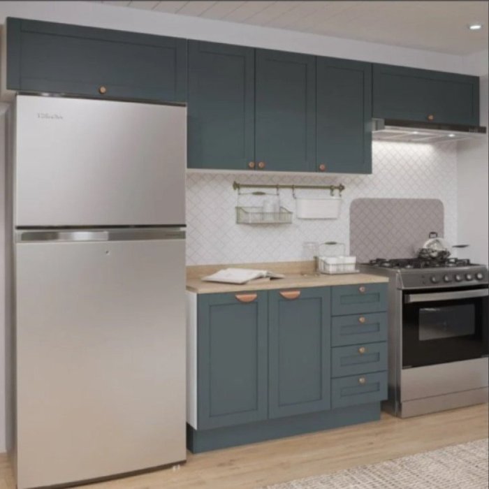 A Cozinha Modulada Arizona é indicada para quem tem pouco espaço e está buscando um móvel compacto, bonito e funcional. Possui portas com molduras, dobradiças com amortecimento e gavetas com corrediças telescópicas.