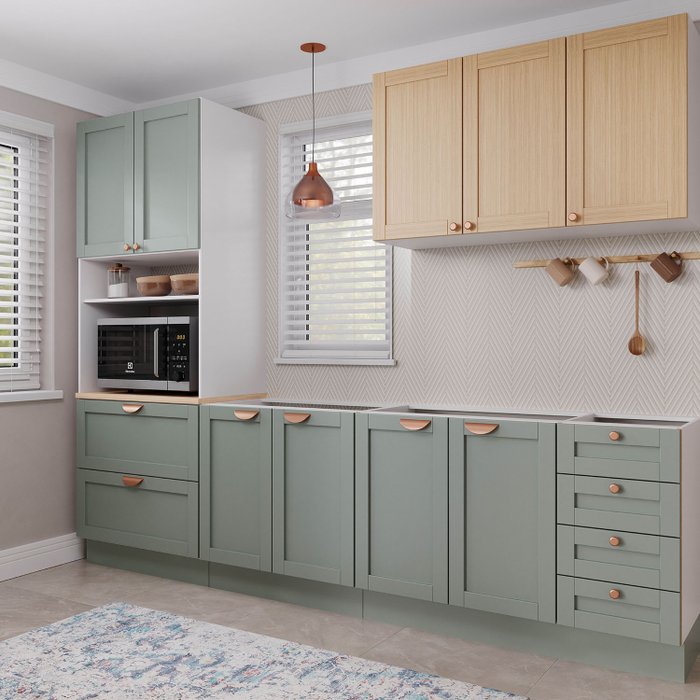 Cozinha Modulada 4 Peças sem Tampo 1 Torre 1 Aéreo 2 Balcões Arizona CabeCasa MadeiraOriginals Figueira/Menta