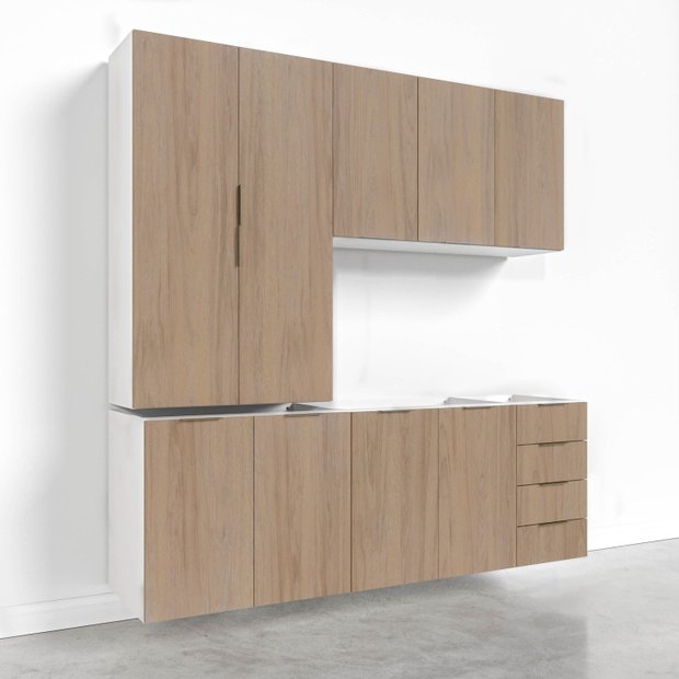 Cozinha Modulada 4 Peças sem Tampo Suspensa 2 Aéreos e 2 Balcões Ipanema Cabecasa Madeiraoriginals Acácia/Branco