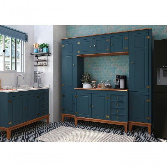 Cozinha Modulada 5 Peças - Azul Petróleo A Cozinha Modulada 5 Peças Azul Petróleo da La Decora é completamente cheio de charme e elegância. Com estilo rústico que agrega luxo e conforto à decoração, é ideal para compor ambientes de cozinha e copa.